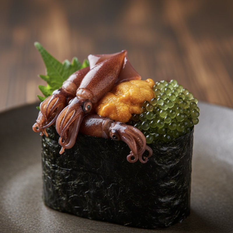 這就是來自台灣深海的珍寶——生食級螢烏賊!每一口都飽滿Q彈、鮮甜濃郁,像海膽一樣在口中爆漿!