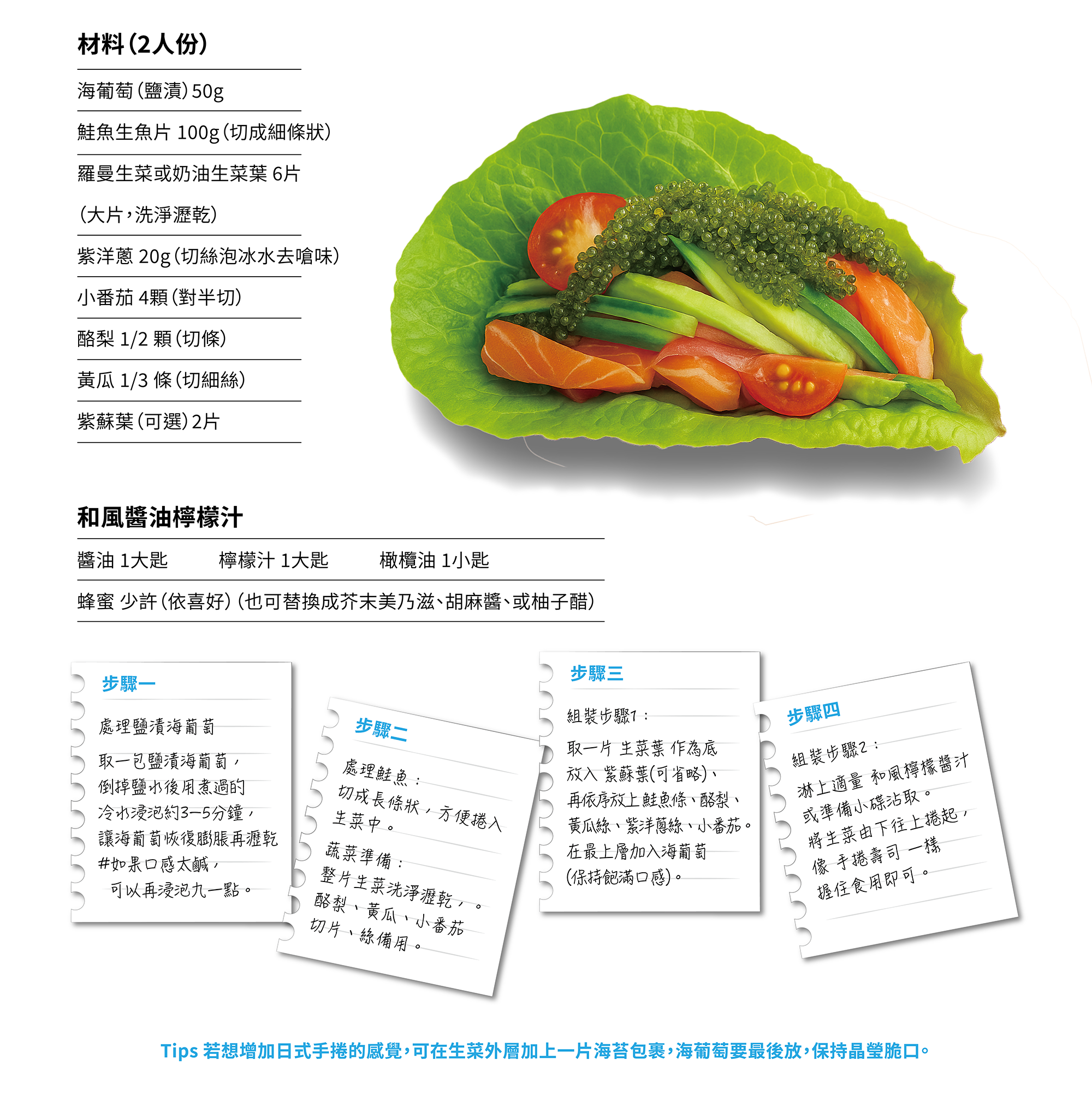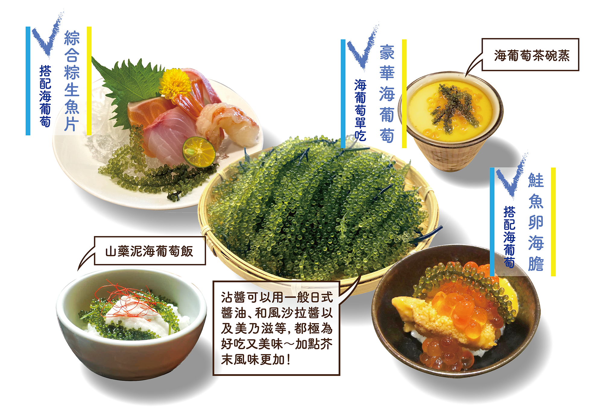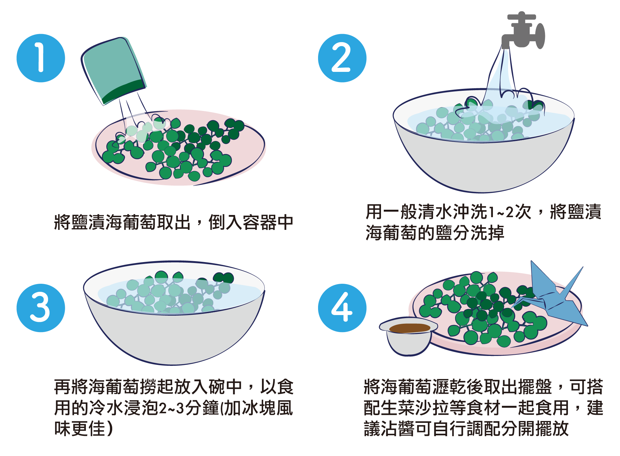 TIPS : 海葡萄的鹽度可以依照浸泡的時間