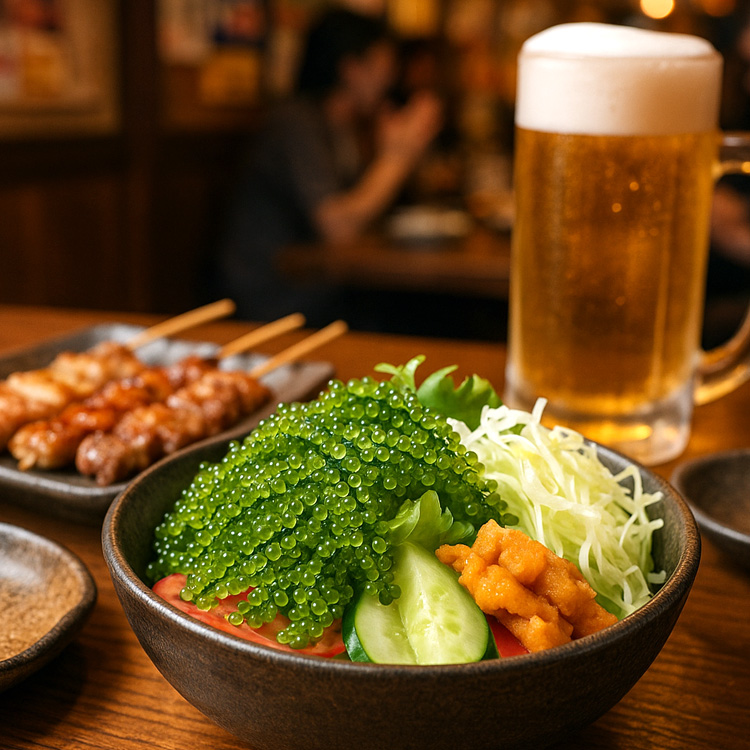 嚴選自潔淨海域、天然養殖的海葡萄,顆粒飽滿晶瑩,入口瞬間釋放迷人的海洋鮮味,宛如海中綠色魚子醬,